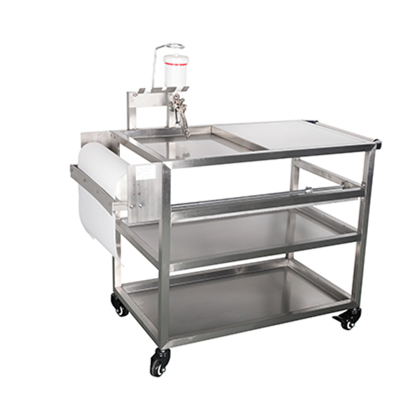 此設備采用優質不銹鋼制做而成;共分上中下三層;上層是一個調漆平臺可以調漆、加漆、擺放噴槍等;中間和下層可以放置油漆和遮蔽紙;中間和側面整有遮蔽紙架,裝有固定刀鋸,膠帶固定盤;便于剪切紙張;裝有萬向輪固定或移動較為方便。