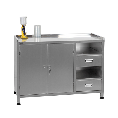 采用優質不銹鋼打造;方便于調漆車間擺放和日常整理及調漆工作。是調漆車間必不可少的整體柜。材料:厚1.2MM 尺寸:1200*520*850(MM) 臺面下忖防火板(10MM)(其它尺寸可定制)